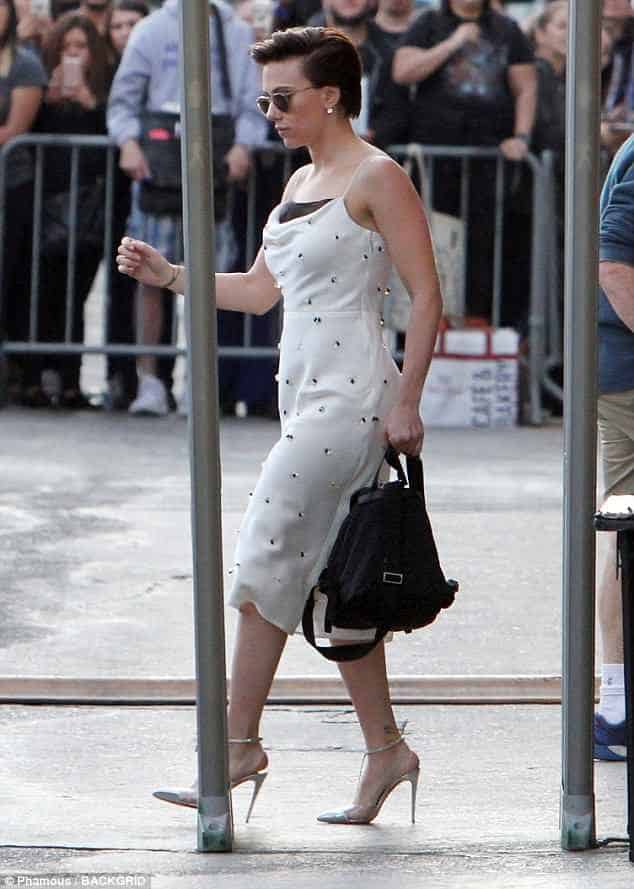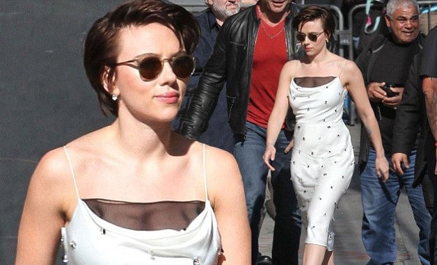 Scarlett Johansson, celebrated for her roles in the Avengers film series, made a dazzling appearance on Jimmy Kimmel Live, turning heads in a sleeveless gown that showcased her Hollywood elegance.