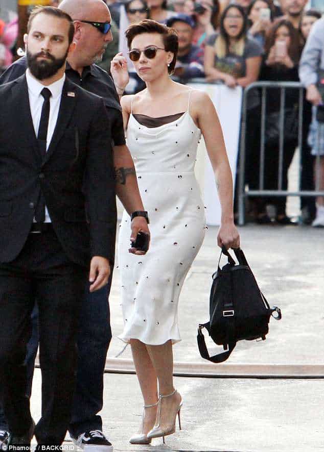 In conclusion, Scarlett Johansson’s enchanting presence in a sleeveless gown on Jimmy Kimmel Live, alongside her Avengers castmates, marked a magical moment in late-night television.