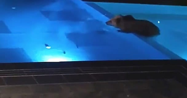 When they reviewed the surveillance footage, they found that the uninvited guest was a bear who has since become a regular at the pool.