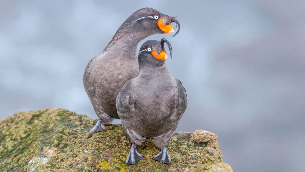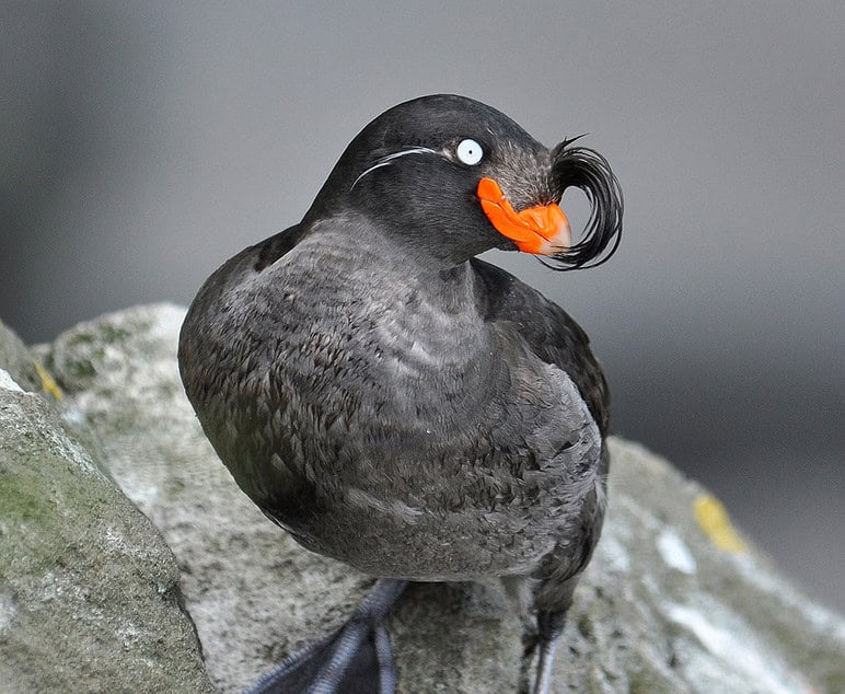 The Crested Auklet (Aethia cristatella) is a small seabird inhabiting the North Pacific waters, ranging from Alaska to Japan. Known for its striking appearance and unusual behaviors, this species has captivated scientists and birdwatchers alike.