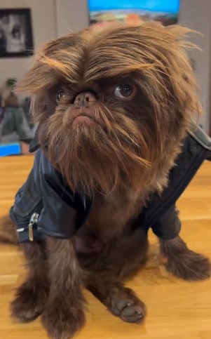 Initially dubbed “baby Chewbacca” by a passerby during a visit to the vet, Proshka now embraces his famous nickname, charming everyone he meets on his walks. And while his judgmental looks may deceive, Proshka is, in fact, a happy and content pup.