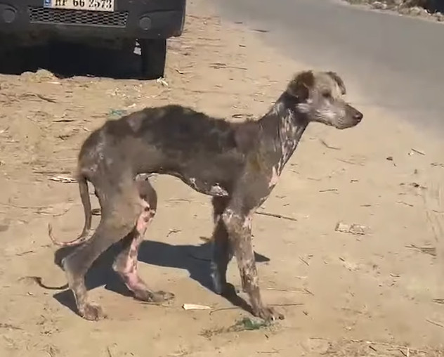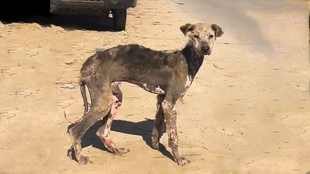 A thin, fearful dog with patchy fur and terrified eyes was spotted by a concerned citizen. The dog’s mistrust and pain reflected a life of hardship.