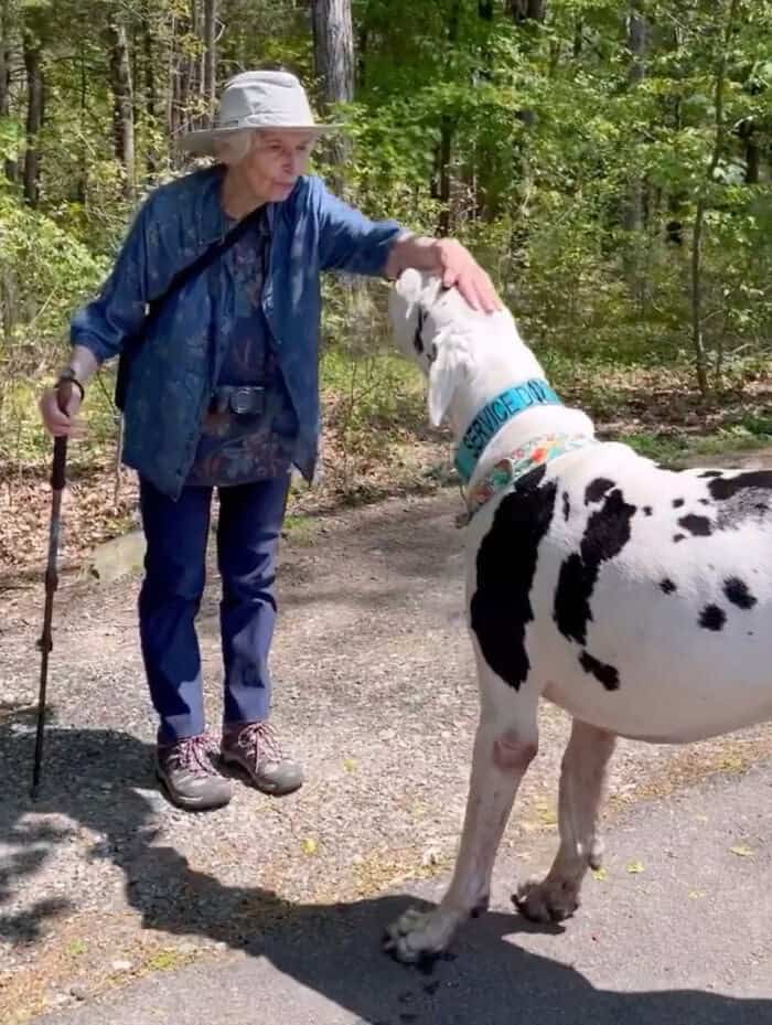 Heartwarming Tale: Great Dane Adopts Elderly Woman as Grandma on Hiking Adventures