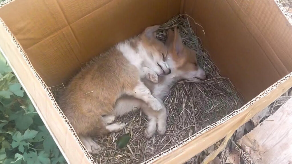 Two corgis were left abandoned in a cardboard box on the side of a road, discarded like trash after one of them reportedly bit someone.