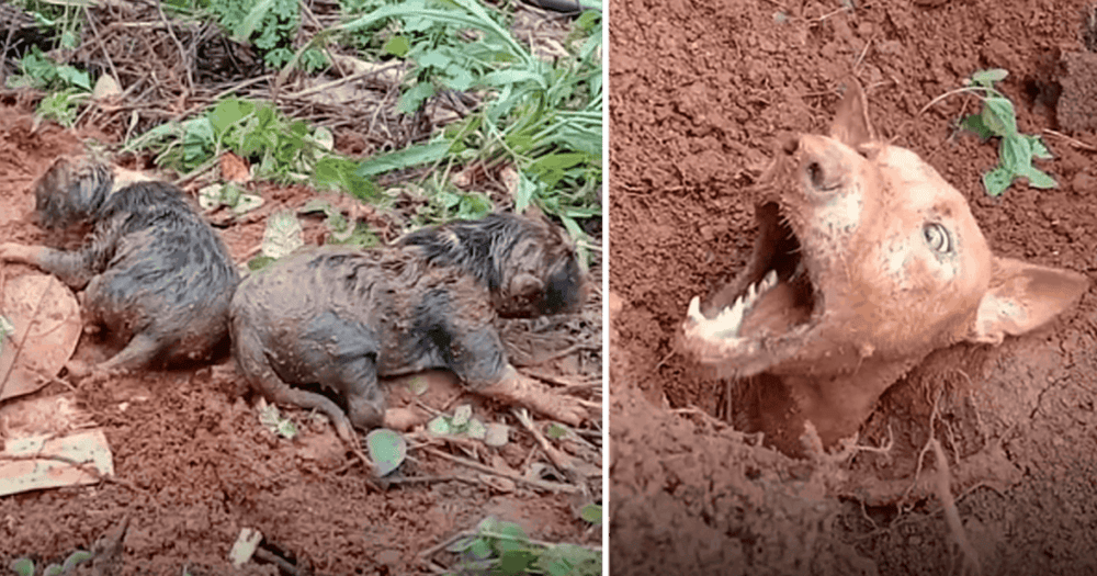 To their surprise, amidst the muck, they discovered two tiny puppies, barely visible beneath the layers of dirt.