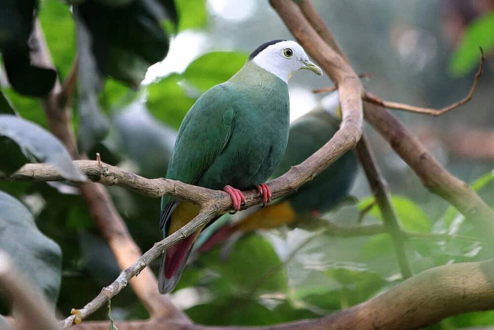 Male Black-naped Fruit Doves are known for their pale grey heads and the distinctive black patch on the nape of their neck, a feature that gives them their name. In contrast, females and juveniles are a vibrant green, making them easy to tell apart from the males.